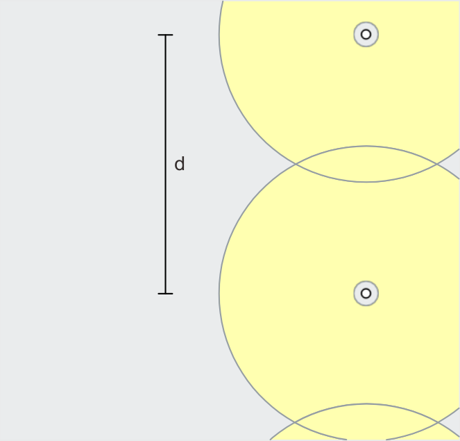 草坪燈360度發光廣場和開放區域統一照明。兩盞燈之間的間距(D)(h=760 mm)。