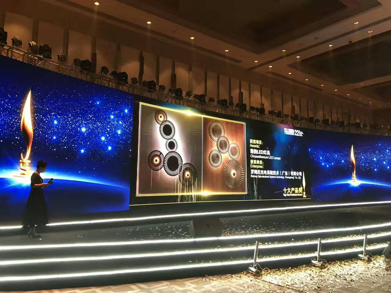 在6月9日晚的阿拉丁神燈獎的頒獎晚會上,ROMNEY羅姆尼菊韻系列LED燈具憑借著產品的優秀,連奪“最佳人氣獎”和“十大產品獎”兩項大獎,取得了傲人的成績。