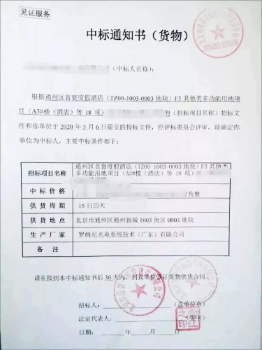 ROMNEY中標北京環球影城項目通知書