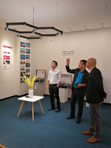 ▲ 彭總向雷士照明CEO林良琦詳細介紹了ROMNEY的創新作品