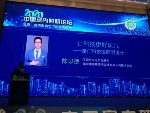 ROMNEY作為“2020中國室內照明論壇”的承辦方,在論壇上分享了《榮獲全球三大設計獎作品》HANS作品,以及ROMNEY工程項目案例《讓科技更好玩兒》廈門科技館照明設計。特別鳴謝:天津大學宋佳音博士、福州博維斯照明設計總監陳以德的案例分享。