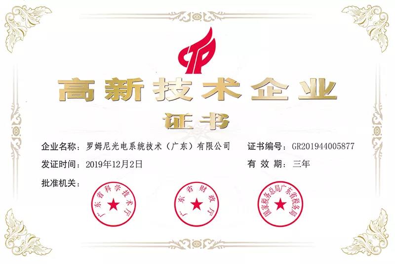 2020年2月再度成為中國國家高新技術企業