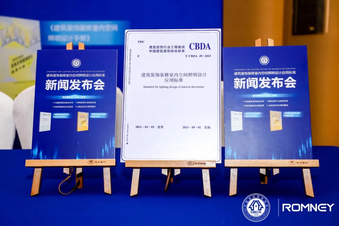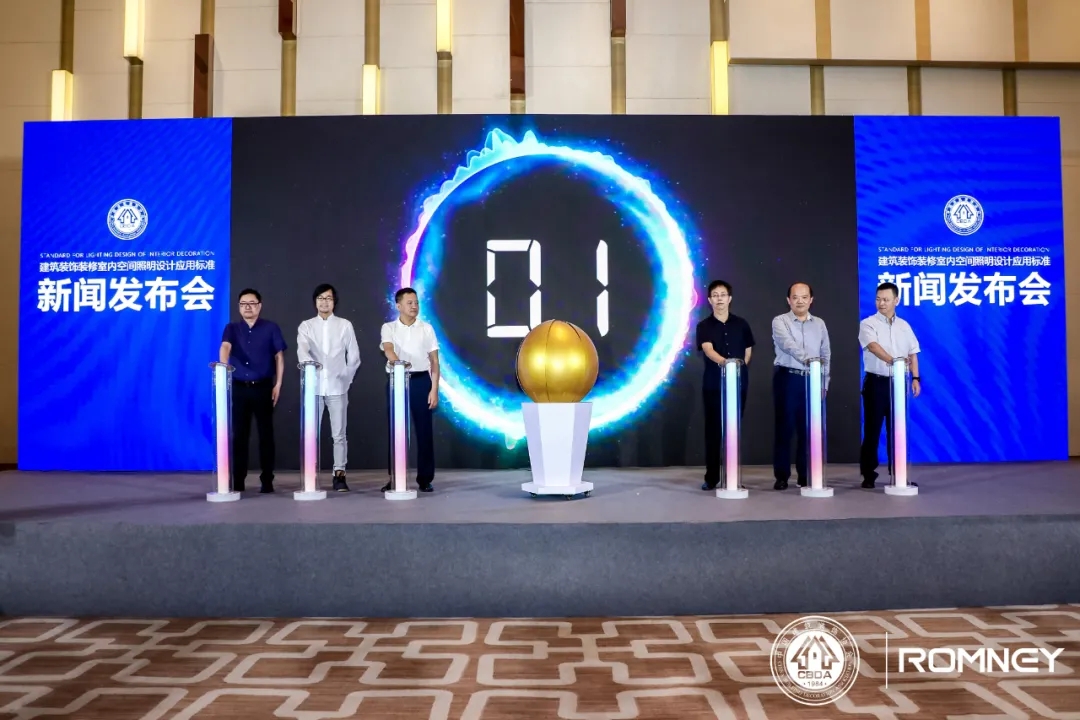 當天發布會上,中國建筑裝飾協會副會長兼秘書長張京躍、中國建筑裝飾協會副秘書長劉原、中國建筑裝飾協會建筑電氣分會秘書長張玉峰、ROMNEY總經理彭銀水等行業嘉賓及媒體代表出席現場,共同見證國內建筑裝飾行業首部“室內空間照明設計應用”團體標準的發布。