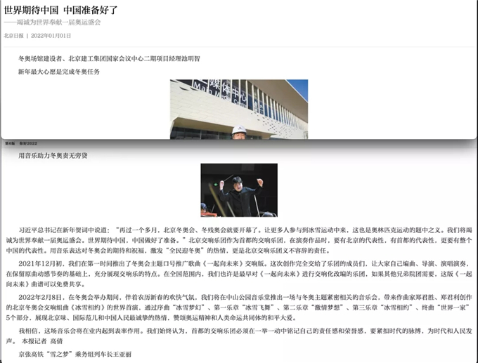 據北京日報1月1日報道,北京交響樂團藝術總監、首席常任指揮李飚向世界推介:“我相信,這場音樂會將在業內起到表率作用。我們始終認為,首都的交響樂團必須在一舉一動中銘記自己的責任感和榮譽感,要緊扣時代的脈搏,為時代和人民發聲。”這不僅僅是北京獻給冬奧會的音樂厚禮,也是中國本土原創交響樂在世界級盛會期間向國際發出的音樂號角,更是新時代強有力的中國之聲。