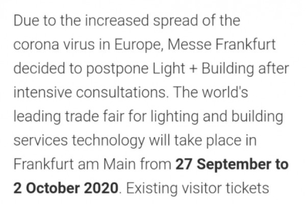 延期有時間表了:2020德國法蘭克福照明+建筑展將于9月27日-10月2日舉行