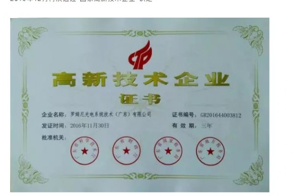 喜訊!ROMNEY羅姆尼光電再次通過國家高新技術企業認定